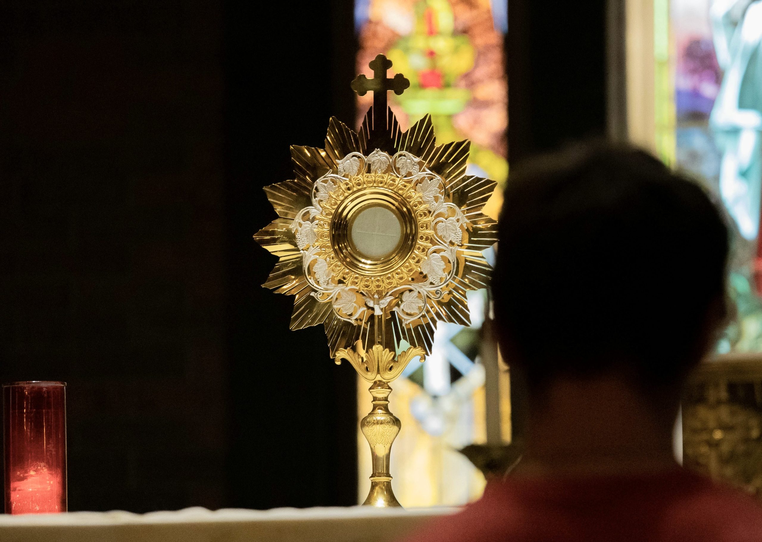4. Geheimnis … Jesus, der im Allerheiligsten Sakrament würdig ist, Tag und Nacht angebetet zu werden.