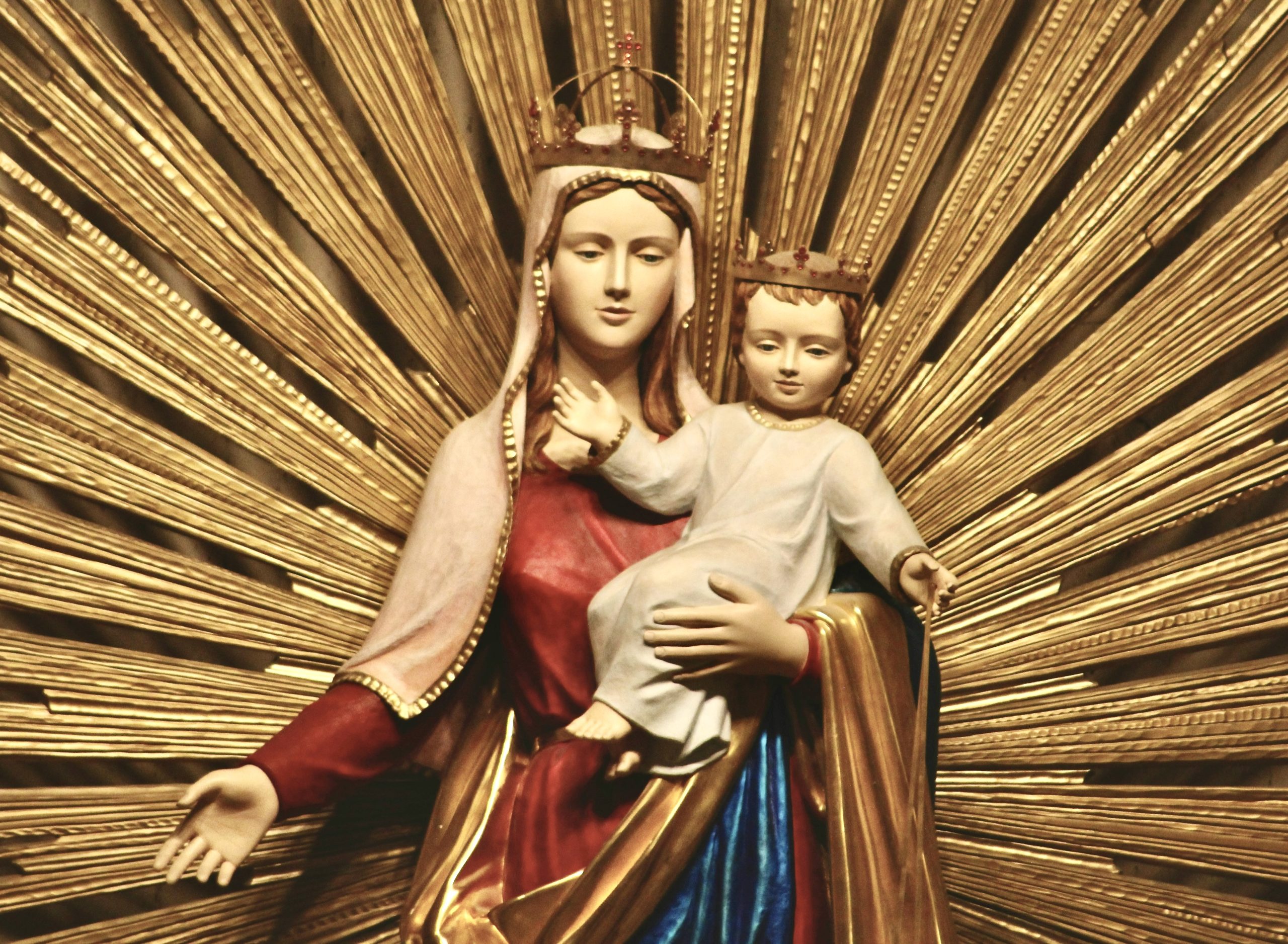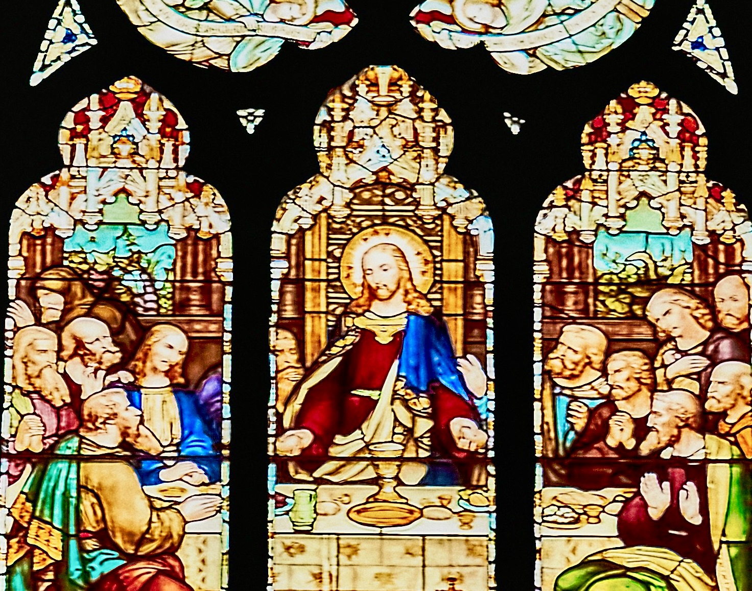 Bilder von unsplash.com mit Dank an Mateus Campus Felipe (Titelbild), ddp-T7Z-C7gQN00 (Maria und Jesus, blauer Himmel), Mitch Hodge (Abendmahl, Kirchenfenster), Jonathan Dick (Maria und Jesus, Strahlenkranz), Matea Gregg (Anbeter vor dem Allerheiligsten)