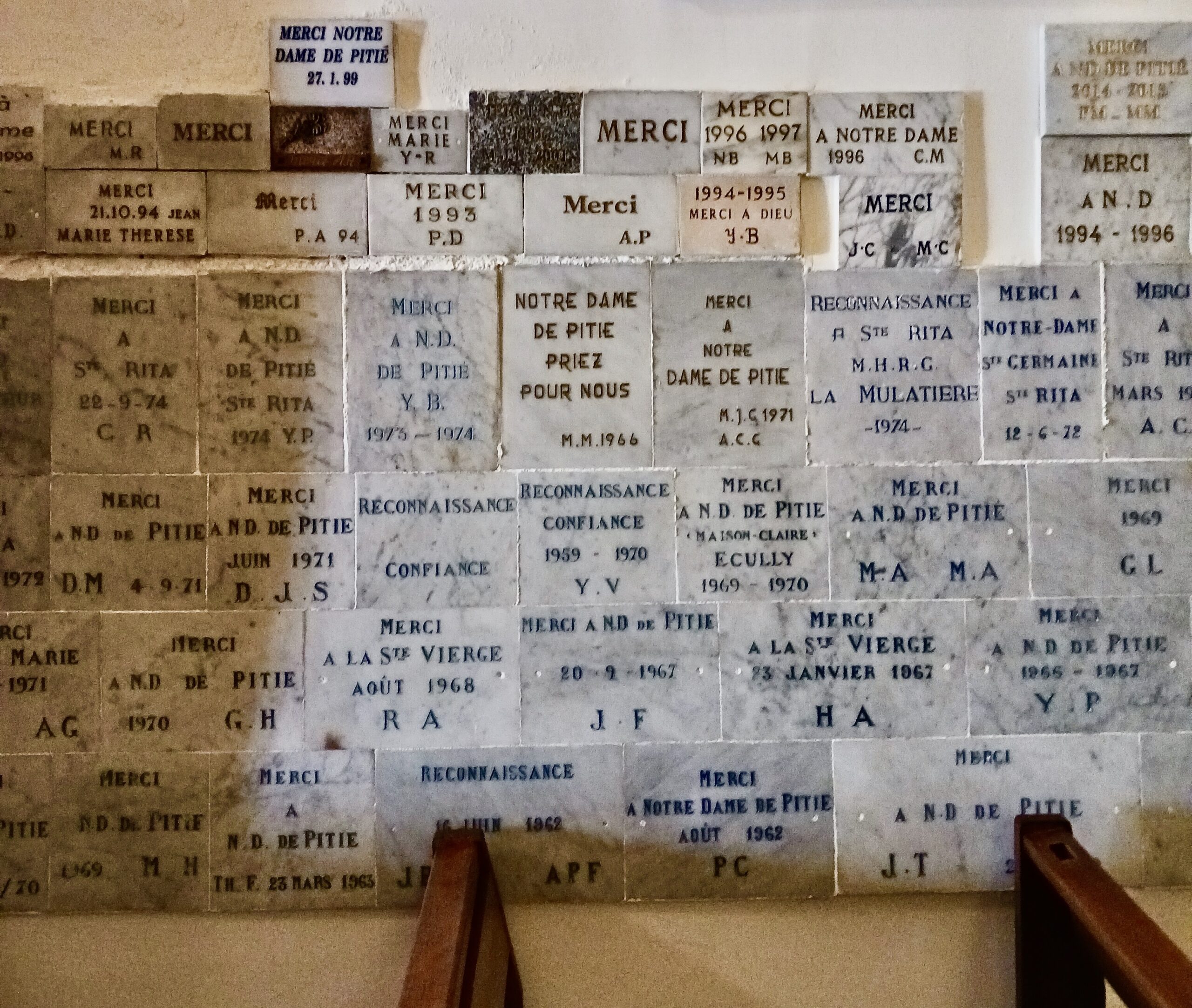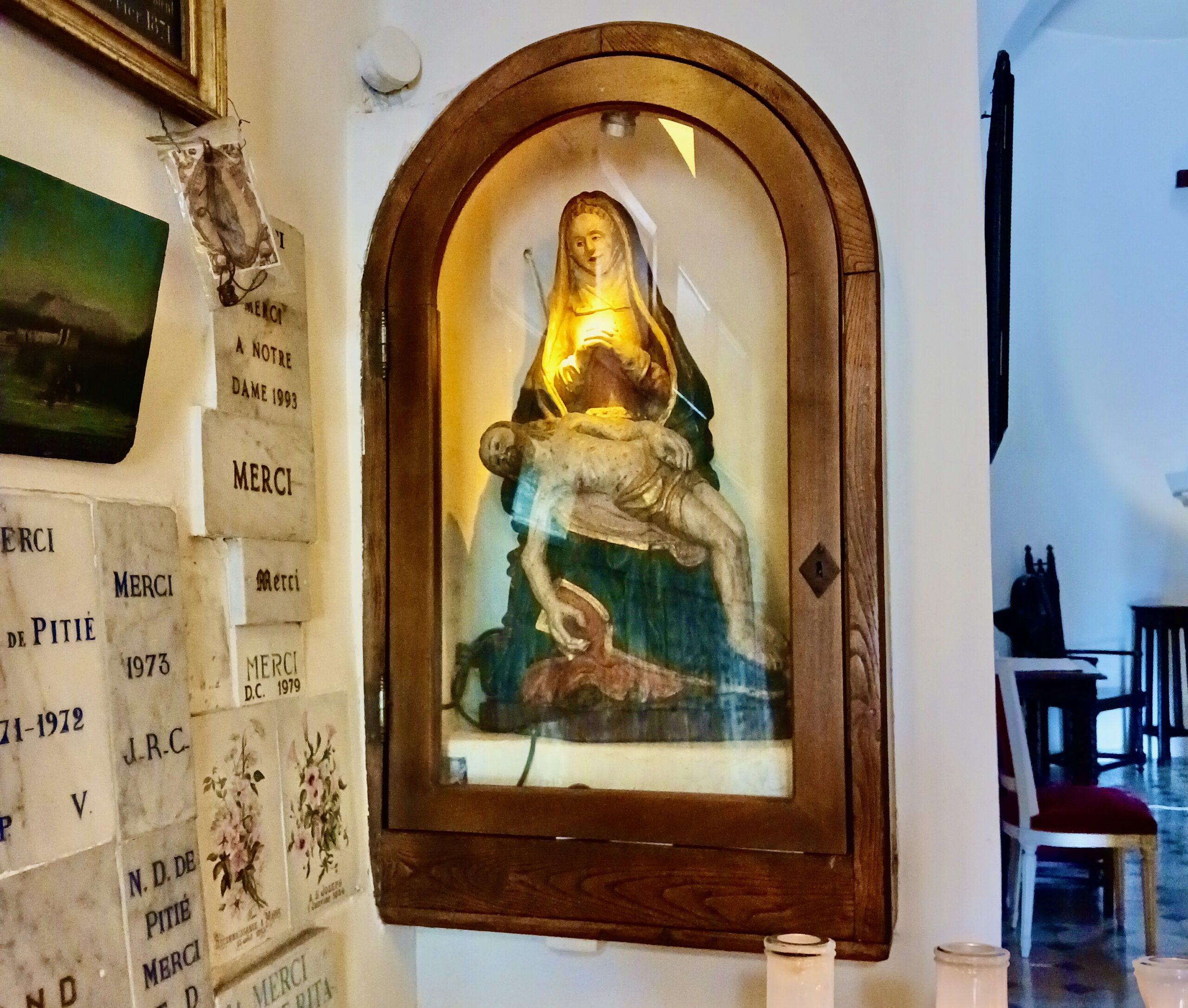 Wie schon bei unseren früheren Besuchen in Sanary nutzten wir häufig die Gelegenheit, in der Kapelle zu beten und an der Heiligen Messe teilzunehmen. Besonders beeindruckt haben mich die unzähligen Votivtafeln dort, die über die Jahrhunderte hinweg vom ungebrochenen Glauben der Menschen Zeugnis ablegen. Sie erzählen von Dankbarkeit, Hoffnung und Vertrauen und haben mich auf ihre Weise neu zum Nachdenken gebracht.